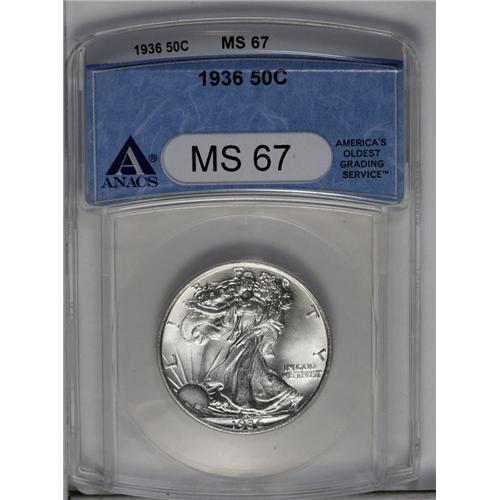 <B>1936<50C> MS67 ANACS.</B></I> Exquisite definition on the design elements complements immaculately preserved, untoned surfaces. Both sides radiate dazzling luster.