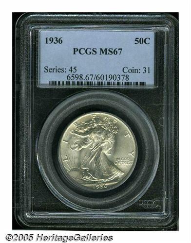 <B>1936<50C> MS67 PCGS.</B></I> Fully brilliant and fully struck with frosty silver luster. A lovely example that will even please the most fastidious collector. Population: 93 in 67, 2 finer (6/05).<BR><I>From The Robert Moreno Collection.</B></I>