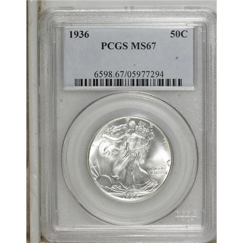 1936 50C MS67 PCGS. The lovely snow-white surfaces are