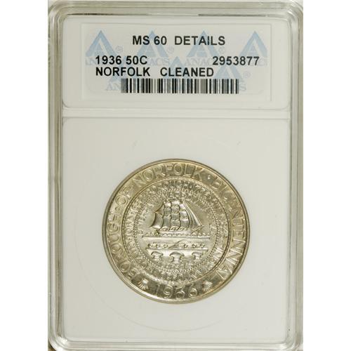 1936 50C Norfolk--Cleaned--ANACS. MS60 Details. NG