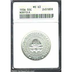 1936 50C Norfolk MS63 ANACS. A boldly struck and essentially brilliant example that has immaculate s