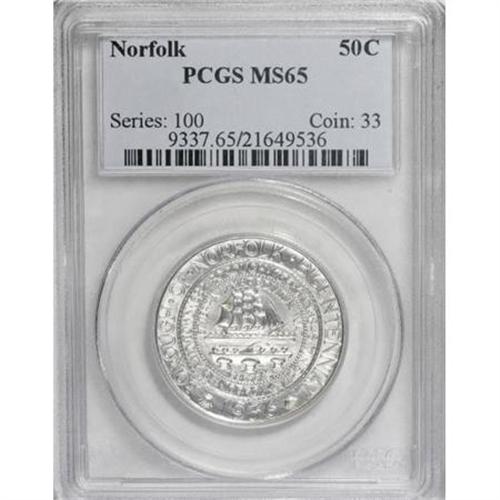 <B>1936 50C Norfolk MS65 PCGS.</B></I> PCGS Population (1050/2426). NGC Census: (512/1589). Mintage: 16,936. Numismedia Wsl. Price for NGC/PCGS coin in MS65: $535. (#9337)<BR><BR><b>Shipping:</b> Coins & Currency (<a target="_blank" href="http://www.heritageauctions.com/common/shipping.php">view shipping information</a>\)