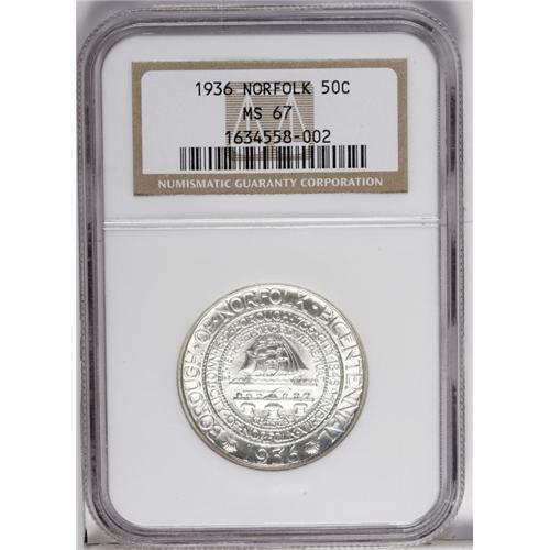 1936 50C Norfolk MS67 NGC. A highly lustrous Superb Ge