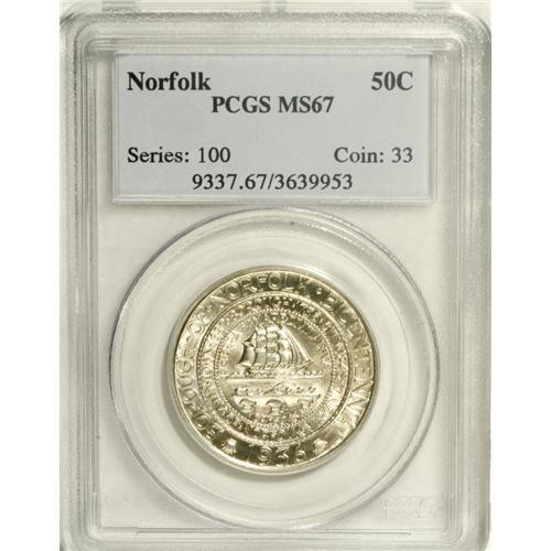 1936 50C Norfolk MS67 PCGS. An essentially untoned and
