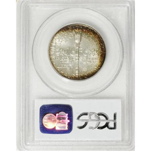 <B>1936 50C Norfolk MS67 PCGS.</B></I> This Superb Gem has brilliant silver surfaces with satin luster and slivers of peripheral crimson-rose and orange toning that form a wider crescent on the reverse. The famously busy Norfolk design resisted marks, and many high-end survivors are known today.<BR><BR><b>Shipping:</b> Coins & Currency (<a target="_blank" href="http://www.heritageauctions.com/common/shipping.php">view shipping information</a>)
