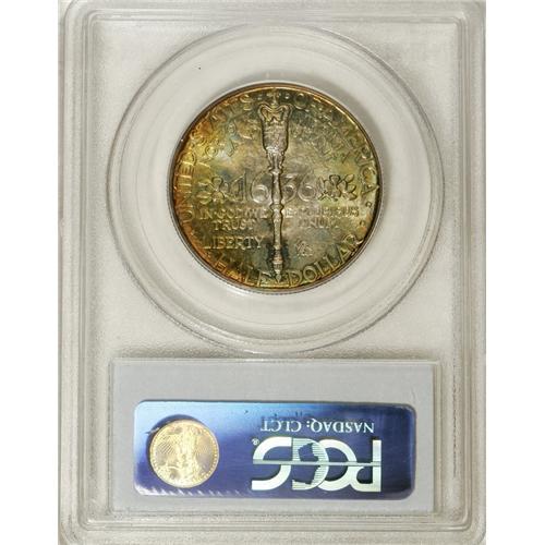 <B>1936 50C Norfolk MS68 PCGS.</B></I> With its busy obverse design that rivals the Texas reverse for complexity, the Norfolk is famous for high-quality representatives, and this delightful coin is no exception. Zones of plum, peach, orange, and silver grace the obverse, while the reverse has green-gold toning with splashes of aqua-emerald and lavender-gray. Tied for the finest graded by PCGS (4/07).<BR><I>From The Cary & Cheryl Porter Collection.</B></I><BR><BR><b>Shipping:</b> Coins & Currency (<a target="_blank" href="http://www.heritageauctions.com/common/shipping.php">view shipping information</a>)