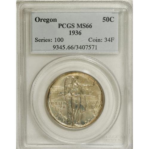 1936 50C Oregon MS66 PCGS. PCGS Population (458/132).