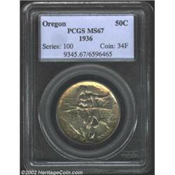 1936 50C Oregon MS67 PCGS. Deep and iridescent apple-green and lavender patina. A razor-sharp Superb Gem that has relentlessly near-pristine surfaces. Important notice: We expect to be auctioning lots at the rate of 200-250 per hour. Sometimes eBay Premier live bid software cannot keep up with that pace, so we strongly recommend that you place a realistic proxy bid now as insurance to avoid disappointment. Also please note that all Heritage/CAA lots purchased through eBay Premier carry a 20% Buyer's Premium. Please make sure you read the Terms and Conditions.