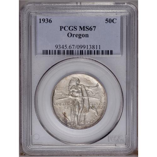 1936 50C Oregon MS67 PCGS. Pearl-gray and mottled russ 1936[50C] Oregon MS67 PCGS.