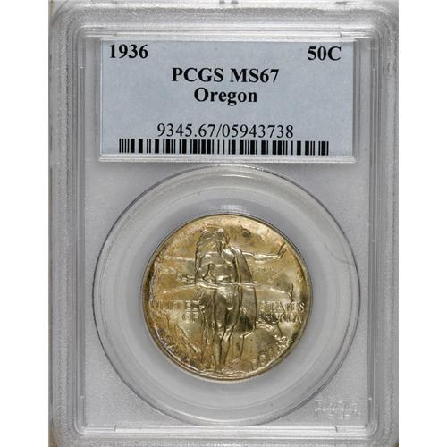 1936 50C Oregon MS67 PCGS. The Oregon Trail coins were