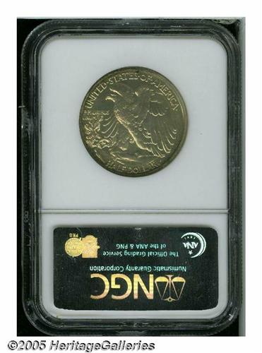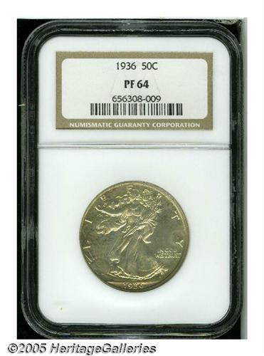 <B>1936<50C> PR64 NGC.</B></I> Lightly toned with a blush of gold starting to form over the reflective surfaces. This is a very attractive coin for the grade, with clean surfaces throughout. Scarce and always in strong demand.
