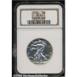 <B>1936<50C> PR65 NGC.</B></I> A solid Gem specimen, completely brilliant and free of noticeable hairlines. Unlike later date proof Walkers, the first year 1936 is a scarce item in grades exceeding PR65. The fields are deeply reflective and, overall, the coin has a good "look" to it. <BR><BR><B>Important notice:</B> Heritage usually auctions material at the rate of 200-250 lots per hour. On some occasions eBay Live bid software or the Internet may not be able to keep up with the pace of the auction. We recommend placing a realistic absentee bid now as insurance to avoid disappointment. Occasionally the auctioneer may eliminate or reject an eBay Live bid, and the auctioneer may also reopen a lot after the close of the eBay live bidding (usually because we missed an audience bid), and may reject your bid even if it shows you as the winning bidder. By bidding via eBay Live, you agree that Heritage may award the lot to another bidder at its sole discretion under the circumstances described above or any other reasonable circumstances. Since eBay bids are not shown to us until we open the lot on the floor, we treat those bids just like floor bids. In most cases the floor responds before the eBay bid is presented to us, due to Internet lag time, so for consistency we have made it a policy that floor bids are always considered first over tie eBay live bids. Also please note that all Heritage lots purchased through eBay Live carry a 20% Buyer's Premium. Please make sure you read the Terms and Conditions before you bid. </span></font></tr></table></td></tr></table>