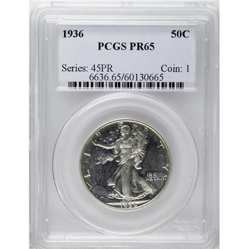 <B>1936 50C PR65 PCGS.</B></I> This lovely Gem has noticeable contrast between the fields and devices, although not enough to warrant a Cameo designation from PCGS. In fact, there has never been a cameo example of this date certified by PCGS, and only seven coins of this design have received such a designation. The fields are deeply mirrored with hints of gold toning. We encourage the specialist to give this coin due consideration.<BR><I>From The Park Cities Collection.</B></I><BR><BR><b>Shipping:</b> Coin/Currency (<a target="_blank" href="http://www.heritageauctions.com/common/shipping.php">view shipping information</a>)