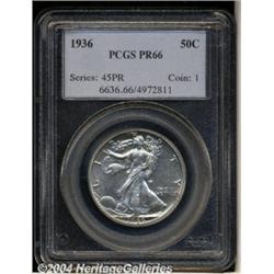 <B>1936<50C> PR66 PCGS.</B></I> Brilliant and nearly untoned, with just a hint of speckled milky toning in the fields, and a narrow ring of russet color along the left reverse border. The design elements are exquisitely struck throughout, and pristine surfaces are seemingly devoid of any serious marks. <BR><BR><B>Important notice:</B> Heritage usually auctions material at the rate of 200-250 lots per hour. On some occasions eBay Live bid software or the Internet may not be able to keep up with the pace of the auction. We recommend placing a realistic absentee bid now as insurance to avoid disappointment. Occasionally the auctioneer may eliminate or reject an eBay Live bid, and the auctioneer may also reopen a lot after the close of the eBay live bidding (usually because we missed an audience bid), and may reject your bid even if it shows you as the winning bidder. By bidding via eBay Live, you agree that Heritage may award the lot to another bidder at its sole discretion under the circumstances described above or any other reasonable circumstances. Since eBay bids are not shown to us until we open the lot on the floor, we treat those bids just like floor bids. In most cases the floor responds before the eBay bid is presented to us, due to Internet lag time, so for consistency we have made it a policy that floor bids are always considered first over tie eBay live bids. Also please note that all Heritage lots purchased through eBay Live carry a 20% Buyer's Premium. Please make sure you read the Terms and Conditions before you bid. </span></font></tr></table></td></tr></table>