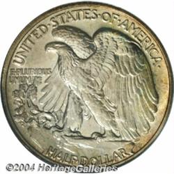 <table><tr><td><table><tr><td>1936 50C PR68 PCGS. To date (2/04), this is the single finest certified 1936 proof Half Dollar seen by either service. This one is obviously a product of a first strike from new dies, as was subsequently carefully preserved by a dedicated collector. Every last design element rises noticeably above smooth surfaces with pinpoint striking definition. Distracting abrasions? There are none! The originally preserved surfaces do reveal beautiful gold and crimson patina that is most extensive in a few areas around the peripheries and over the reverse. A jewel in the crown of the plethora of '36 proof Walkers we are offering in this sale.From the Nicholas Collection. <BR><BR><B>Important notice:</B> Heritage usually auctions material at the rate of 200-250 lots per hour. On some occasions eBay Live bid software or the Internet may not be able to keep up with the pace of the auction. We recommend placing a realistic absentee bid now as insurance to avoid disappointment. Occasionally the auctioneer may eliminate or reject an eBay Live bid, and the auctioneer may also reopen a lot after the close of the eBay live bidding (usually because we missed an audience bid), and may reject your bid even if it shows you as the winning bidder. By bidding via eBay Live, you agree that Heritage may award the lot to another bidder at its sole discretion under the circumstances described above or any other reasonable circumstances. Since eBay bids are not shown to us until we open the lot on the floor, we treat those bids just like floor bids. In most cases the floor responds before the eBay bid is presented to us, due to Internet lag time, so for consistency we have made it a policy that floor bids are always considered first over tie eBay live bids. Also please note that all Heritage lots purchased through eBay Live carry a 20% Buyer's Premium. Please make sure you read the Terms and Conditions before you bid. <BR><BR><B>IMPORTANT ANNOUNCEMENT ABOUT RESERVES:</B> Heritage now divulges all reserves on its web site 7 days before every auction. If you want to know whether the reserve on this lot has been met, and if not, what the reserve amount is, please visit this lot page on the HeritageCoin.com web site, or email: bid@HeritageGalleries.com </span></font></td></tr></table></td></tr></table>