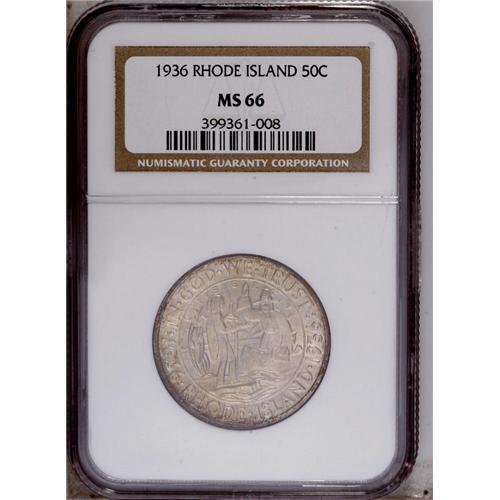 1936 50C Rhode Island MS66 NGC. Lustrous surfaces are 1936[50C] Rhode Island MS66 NGC.