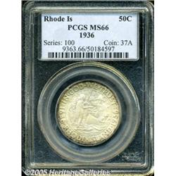 <B>1936 50C Rhode Island MS66 PCGS.</B></I> Speckles of golden-brown toning visit lustrous surfaces that are well preserved. The design features are adequately struck throughout.