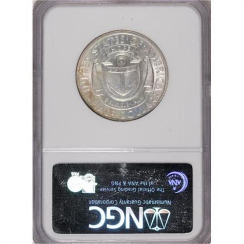 <B>1936 50C Rhode Island MS67 NGC.</B></I> Subtly lustrous with small splashes of golden toning near the rims of this otherwise silver-white example. Carefully preserved with impressive eye appeal. NGC has graded only one numerically finer representative (2/08).<BR><BR><b>Shipping:</b> Coins & Currency (<a target="_blank" href="http://www.heritageauctions.com/common/shipping.php">view shipping information</a>)