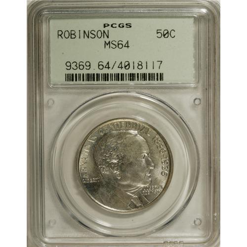 <B>1936 50C Robinson MS64 PCGS.</B></I> PCGS Population (1640/1346). NGC Census: (951/922). Mintage: 25,265. Numismedia Wsl. Price: $168. (#9369)<BR><BR><b>Shipping:</b> Coins & Currency (<a target="_blank" href="http://www.heritageauctions.com/common/shipping.php">view shipping information</a>)