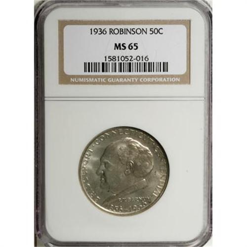 <B>1936 50C Robinson MS65 NGC.</B></I> NGC Census: (741/208). PCGS Population (941/435). Mintage: 25,265. Numismedia Wsl. Price for NGC/PCGS coin in MS65: $400. (#9369)<BR><BR><b>Shipping:</b> Coins & Currency (<a target="_blank" href="http://www.heritageauctions.com/common/shipping.php">view shipping information</a>)