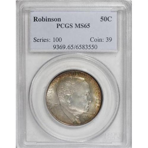<B>1936 50C Robinson MS65 PCGS.</B></I> PCGS Population (920/426). NGC Census: (726/203). Mintage: 25,265. Numismedia Wsl. Price for NGC/PCGS coin in MS65: $400. (#9369)<BR><BR><b>Shipping:</b> Coins & Currency (<a target="_blank" href="http://www.heritageauctions.com/common/shipping.php">view shipping information</a>\)
