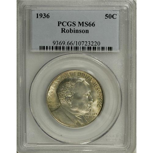 <B>1936 50C Robinson MS66 PCGS.</B></I> The golden patina that graces each side has traces of orange and brown. A solidly struck and highly lustrous example of this dignified commemorative issue.<BR><BR><b>Shipping:</b> Coins & Currency (<a target="_blank" href="http://www.heritageauctions.com/common/shipping.php">view shipping information</a>)