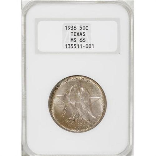 <B>1936 50C Texas MS66 NGC.</B></I> NGC Census: (435/96). PCGS Population (522/109). Mintage: 8,911. Numismedia Wsl. Price for NGC/PCGS coin in MS66: $380. (#9386)<BR><BR><b>Shipping:</b> Coins & Currency (<a target="_blank" href="http://www.heritageauctions.com/common/shipping.php">view shipping information</a>\)