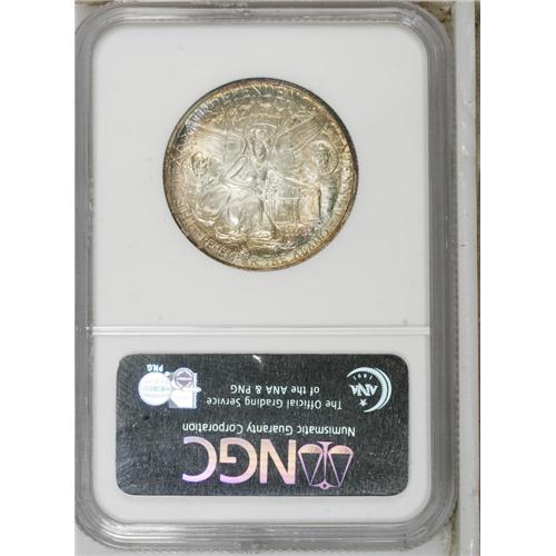 <B>1936 50C Texas MS67 NGC.</B></I> A thin coat of lavender, cobalt-blue, and tan covers highly lustrous surfaces that exhibit well impressed design elements. A couple of small milling marks are located on the eagle's breast. Census: 89 in 67, 6 finer (2/07).<BR><BR><b>Shipping:</b> Coins & Currency (<a target="_blank" href="http://www.heritageauctions.com/common/shipping.php">view shipping information</a>)