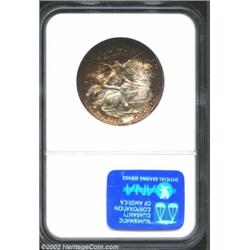 1936 50C Texas MS67 NGC. The obverse has the intensity of a Victorian stained glass window with thick planes of magenta, sapphire, and golden yellow. The reverse has more irregular, yet equally dynamic toning. The untoned areas of the reverse act as negative space to both highlight the magenta toning and to illuminate the thick luster and clean surfaces, creating a highly pleasing aesthetic experience on a fantastically preserved Commemorative. Important notice: We expect to be auctioning lots at the rate of 200-250 per hour. Sometimes eBay Premier live bid software cannot keep up with that pace, so we strongly recommend that you place a realistic proxy bid now as insurance to avoid disappointment. Also please note that all Heritage/CAA lots purchased through eBay Premier carry a 20% Buyer's Premium. Please make sure you read the Terms and Conditions.