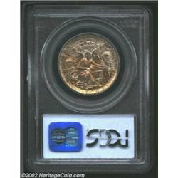 1936 50C Texas MS67 PCGS. Deeply speckled with copper-gold and lime-green patina. A razor-sharp and.