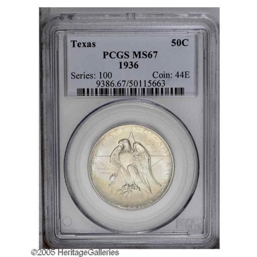 1936 50C Texas MS67 PCGS. Light champagne patina is bl 1936[50C] Texas MS67 PCGS.