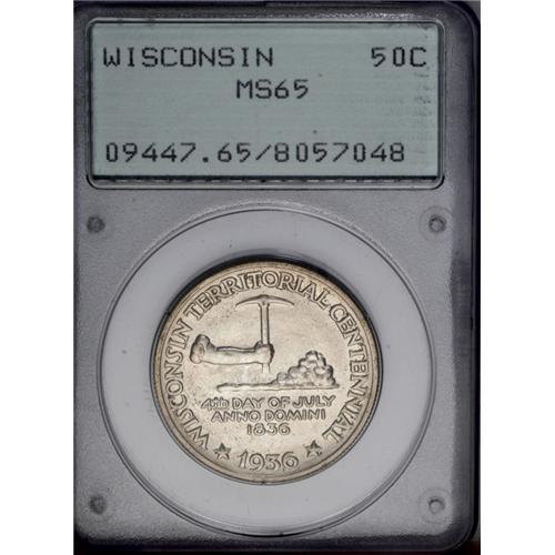 1936 50C Wisconsin MS65 PCGS. The pleasing surfaces on 1936[50C] Wisconsin MS65 PCGS.