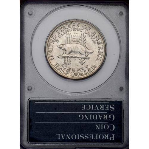 <B>1936<50C> Wisconsin MS65 PCGS.</B></I> The pleasing surfaces on this Gem are a light silver-gold, with a few smoke-gray spots on both sides. Appealingly struck, and showing just a couple of small contact marks and dark spots on the reverse badger. Certified in an old-style PCGS holder. <BR><BR><B>Important notice:</B> Heritage usually auctions material at the rate of 200-250 lots per hour. On some occasions eBay Live bid software or the Internet may not be able to keep up with the pace of the auction. We recommend placing a realistic absentee bid now as insurance to avoid disappointment. Occasionally the auctioneer may eliminate or reject an eBay Live bid, and the auctioneer may also reopen a lot after the close of the eBay live bidding (usually because we missed an audience bid), and may reject your bid even if it shows you as the winning bidder. By bidding via eBay Live, you agree that Heritage may award the lot to another bidder at its sole discretion under the circumstances described above or any other reasonable circumstances. Since eBay bids are not shown to us until we open the lot on the floor, we treat those bids just like floor bids. In most cases the floor responds before the eBay bid is presented to us, due to Internet lag time, so for consistency we have made it a policy that floor bids are always considered first over tie eBay live bids. Also please note that all Heritage lots purchased through eBay Live carry a 20% Buyer's Premium. Please make sure you read the Terms and Conditions before you bid. This lot is being auctioned in conjunction with a live floor auction by Heritage Galleries & Auctioneers. All final auction and invoice information will be supplied by Heritage Galleries & Auctioneers, and all other information should be considered preliminary. Lot:5140 <BR><BR><B>Winning Notification and Billing:</B> After the FINAL session in this auction is complete, Heritage will send e-mail and snail mail invoices. This process normally takes several days. All final auction and invoice information will be supplied by Heritage Galleries & Auctioneers, and all other information should be considered preliminary. <BR><BR>This auction will be conducted on a live auction floor and over the Internet through eBay Live. If you choose to place an absentee bid, please take a moment to <font color='#0000ff'><u><a href='http://pages.ebay.com/liveauctions/help/before/laabsentee.html'>learn how eBay Live absentee bidding works</a></u></font><font color='#000000'>