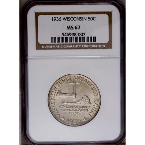 1936 50C Wisconsin MS67 NGC. Fully struck with light, 1936[50C] Wisconsin MS67 NGC.