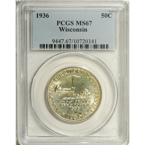 1936 50C Wisconsin MS67 PCGS. Lightly gold-toned overa