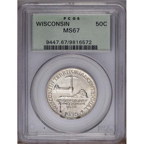 1936 50C Wisconsin MS67 PCGS. Well struck and satiny, 1936[50C] Wisconsin MS67 PCGS.