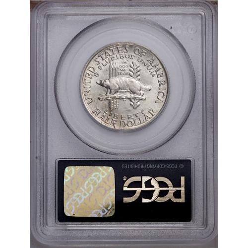 <B>1936<50C> Wisconsin MS67 PCGS.</B></I> Well struck and satiny, with attractive light toning and just one or two surface blemishes. Encased in a green label PCGS holder. <BR><BR><B>Important notice:</B> Heritage usually auctions material at the rate of 200-250 lots per hour. On some occasions eBay Live bid software or the Internet may not be able to keep up with the pace of the auction. We recommend placing a realistic absentee bid now as insurance to avoid disappointment. Occasionally the auctioneer may eliminate or reject an eBay Live bid, and the auctioneer may also reopen a lot after the close of the eBay live bidding (usually because we missed an audience bid), and may reject your bid even if it shows you as the winning bidder. By bidding via eBay Live, you agree that Heritage may award the lot to another bidder at its sole discretion under the circumstances described above or any other reasonable circumstances. Since eBay bids are not shown to us until we open the lot on the floor, we treat those bids just like floor bids. In most cases the floor responds before the eBay bid is presented to us, due to Internet lag time, so for consistency we have made it a policy that floor bids are always considered first over tie eBay live bids. Also please note that all Heritage lots purchased through eBay Live carry a 20% Buyer's Premium. Please make sure you read the Terms and Conditions before you bid. This lot is being auctioned in conjunction with a live floor auction by Heritage Galleries & Auctioneers. All final auction and invoice information will be supplied by Heritage Galleries & Auctioneers, and all other information should be considered preliminary. Lot:5141 <BR><BR><B>Winning Notification and Billing:</B> After the FINAL session in this auction is complete, Heritage will send e-mail and snail mail invoices. This process normally takes several days. All final auction and invoice information will be supplied by Heritage Galleries & Auctioneers, and all other information should be considered preliminary. <BR><BR>This auction will be conducted on a live auction floor and over the Internet through eBay Live. If you choose to place an absentee bid, please take a moment to <font color='#0000ff'><u><a href='http://pages.ebay.com/liveauctions/help/before/laabsentee.html'>learn how eBay Live absentee bidding works</a></u></font><font color='#000000'>