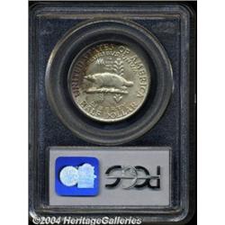 <B>1936<50C> Wisconsin MS67 PCGS.</B></I> Rich rose and golden-brown colors grace the left border of this lustrous and attractively preserved Superb Gem. As of (3/04), a scant 9 pieces have been certified higher by PCGS. <BR><BR><B>Important notice:</B> Heritage usually auctions material at the rate of 200-250 lots per hour. On some occasions eBay Live bid software or the Internet may not be able to keep up with the pace of the auction. We recommend placing a realistic absentee bid now as insurance to avoid disappointment. Occasionally the auctioneer may eliminate or reject an eBay Live bid, and the auctioneer may also reopen a lot after the close of the eBay live bidding (usually because we missed an audience bid), and may reject your bid even if it shows you as the winning bidder. By bidding via eBay Live, you agree that Heritage may award the lot to another bidder at its sole discretion under the circumstances described above or any other reasonable circumstances. Since eBay bids are not shown to us until we open the lot on the floor, we treat those bids just like floor bids. In most cases the floor responds before the eBay bid is presented to us, due to Internet lag time, so for consistency we have made it a policy that floor bids are always considered first over tie eBay live bids. Also please note that all Heritage lots purchased through eBay Live carry a 20% Buyer's Premium. Please make sure you read the Terms and Conditions before you bid. </span></font></tr></table></td></tr></table>