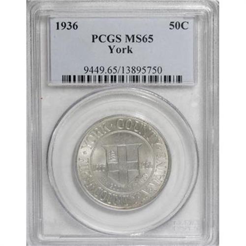 <B>1936 50C York MS65 PCGS.</B></I> PCGS Population (1730/1765). NGC Census: (930/1487). Mintage: 25,015. Numismedia Wsl. Price for NGC/PCGS coin in MS65: $260. (#9449)<BR><I>From The Frank DuVall Collection of U.S. Commemoratives.</B></I><BR><BR><b>Shipping:</b> Coins & Currency (<a target="_blank" href="http://www.heritageauctions.com/common/shipping.php">view shipping information</a>\)