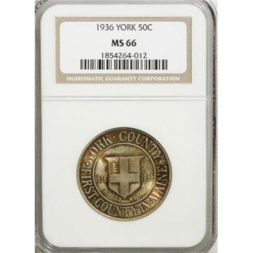 <B>1936 50C York MS66 NGC.</B></I> NGC Census: (1107/380). PCGS Population (1265/500). Mintage: 25,015. Numismedia Wsl. Price for NGC/PCGS coin in MS66: $460. (#9449)<BR><I>From The Frank DuVall Collection of U.S. Commemoratives.</B></I><BR><BR><b>Shipping:</b> Coins & Currency (<a target="_blank" href="http://www.heritageauctions.com/common/shipping.php">view shipping information</a>\)