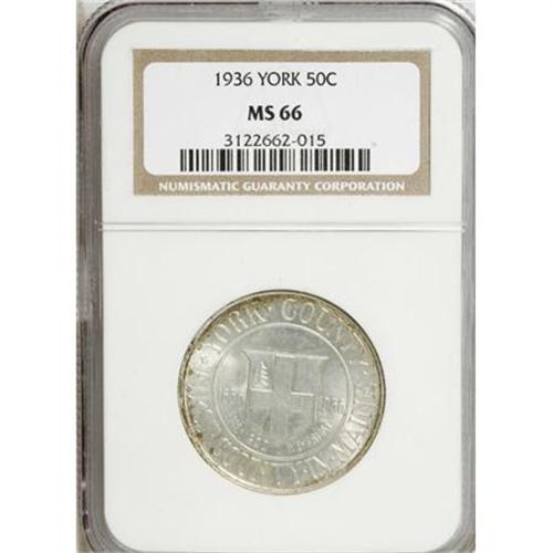 <B>1936 50C York MS66 NGC.</B></I> . NGC Census: (1134/385). PCGS Population (1307/508). Mintage: 25,015. Numismedia Wsl. Price for NGC/PCGS coin in MS66: $440. (#9449)<BR><BR><b>Shipping:</b> Coins & Currency (<a target="_blank" href="http://www.heritageauctions.com/common/shipping.php">view shipping information</a>)
