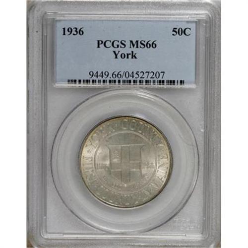 <B>1936 50C York MS66 PCGS.</B></I> PCGS Population (1265/500). NGC Census: (1107/380). Mintage: 25,015. Numismedia Wsl. Price for NGC/PCGS coin in MS66: $460. (#9449)<BR><BR><b>Shipping:</b> Coins & Currency (<a target="_blank" href="http://www.heritageauctions.com/common/shipping.php">view shipping information</a>\)