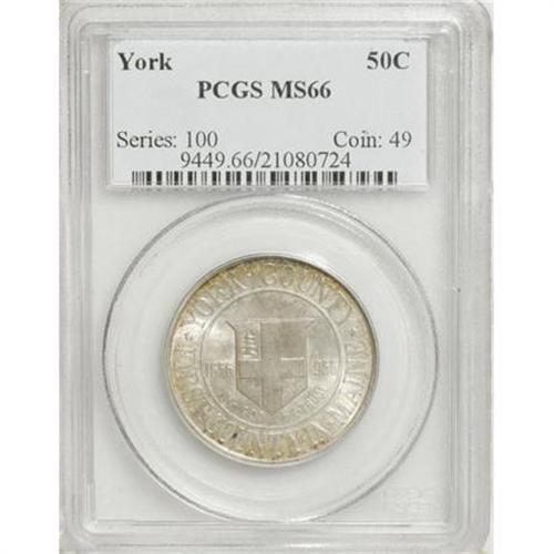 <B>1936 50C York MS66 PCGS.</B></I> Predominantly cream-gray, although blushes of autumn-gold and forest-green cling to the margins. A lustrous and gorgeously smooth Premium Gem.<BR><BR><b>Shipping:</b> Coins & Currency (<a target="_blank" href="http://www.heritageauctions.com/common/shipping.php">view shipping information</a>)