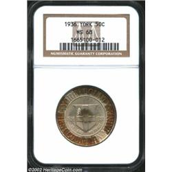 1936 50C York MS68 NGC. This gorgeously toned example displays more or less even tan-gray patination