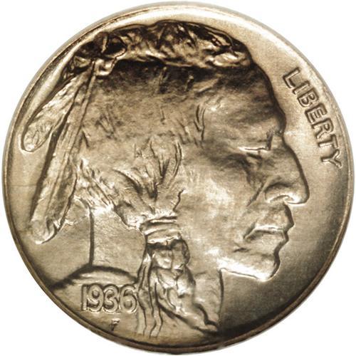 <B>1936<5C> Type One--Satin Finish PR67 NGC.</B></I> At first glance the Satin Finish proofs of this date look like business strikes, although close examination will reveal the much sharper strike throughout, with full obverse and reverse details. Brilliant surfaces have light gold color, a couple shades deeper on the obverse.