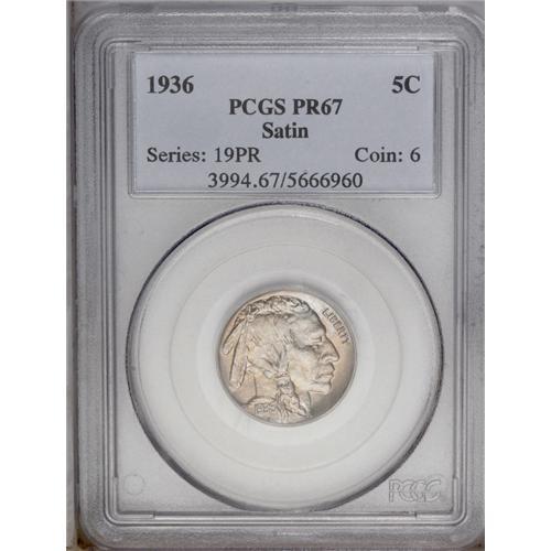 1936 5C Type One--Satin Finish PR67 PCGS. When proof c 1936[5C] Type One--Satin Finish PR67 PCGS.