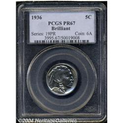 <B>1936<5C> Type Two--Brilliant Finish PR67 PCGS.</B></I> Both sides are uniformly reflective with deeply mirrored features. There is no visible toning, and the surfaces are free of even the most trivial blemish. <BR><BR><B>Important notice:</B> Heritage usually auctions material at the rate of 200-250 lots per hour. On some occasions eBay Live bid software or the Internet may not be able to keep up with the pace of the auction. We recommend placing a realistic absentee bid now as insurance to avoid disappointment. Occasionally the auctioneer may eliminate or reject an eBay Live bid, and the auctioneer may also reopen a lot after the close of the eBay live bidding (usually because we missed an audience bid), and may reject your bid even if it shows you as the winning bidder. By bidding via eBay Live, you agree that Heritage may award the lot to another bidder at its sole discretion under the circumstances described above or any other reasonable circumstances. Since eBay bids are not shown to us until we open the lot on the floor, we treat those bids just like floor bids. In most cases the floor responds before the eBay bid is presented to us, due to Internet lag time, so for consistency we have made it a policy that floor bids are always considered first over tie eBay live bids. Also please note that all Heritage lots purchased through eBay Live carry a 20% Buyer's Premium. Please make sure you read the Terms and Conditions before you bid. </span></font></tr></table></td></tr></table>