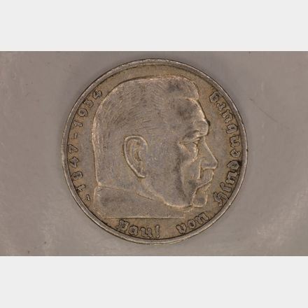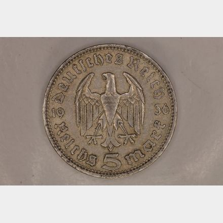 1936-A GERMAN SILVER 5 MARK .4016 OZ. ASW