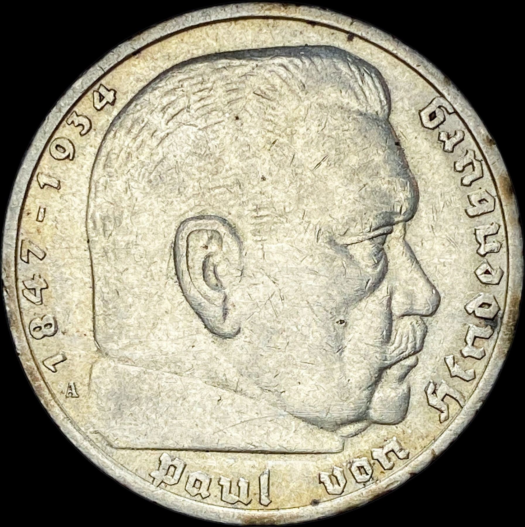 1936-A Germany Silver 5 Reichsmark CLOSELY UNCIRCULATED