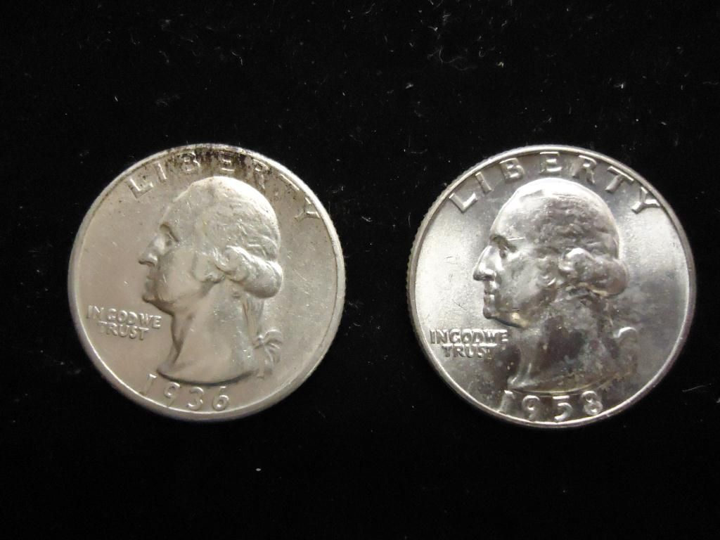 1936 AU & 58-D (UNC) WASHINGTON SILVER QUARTERS